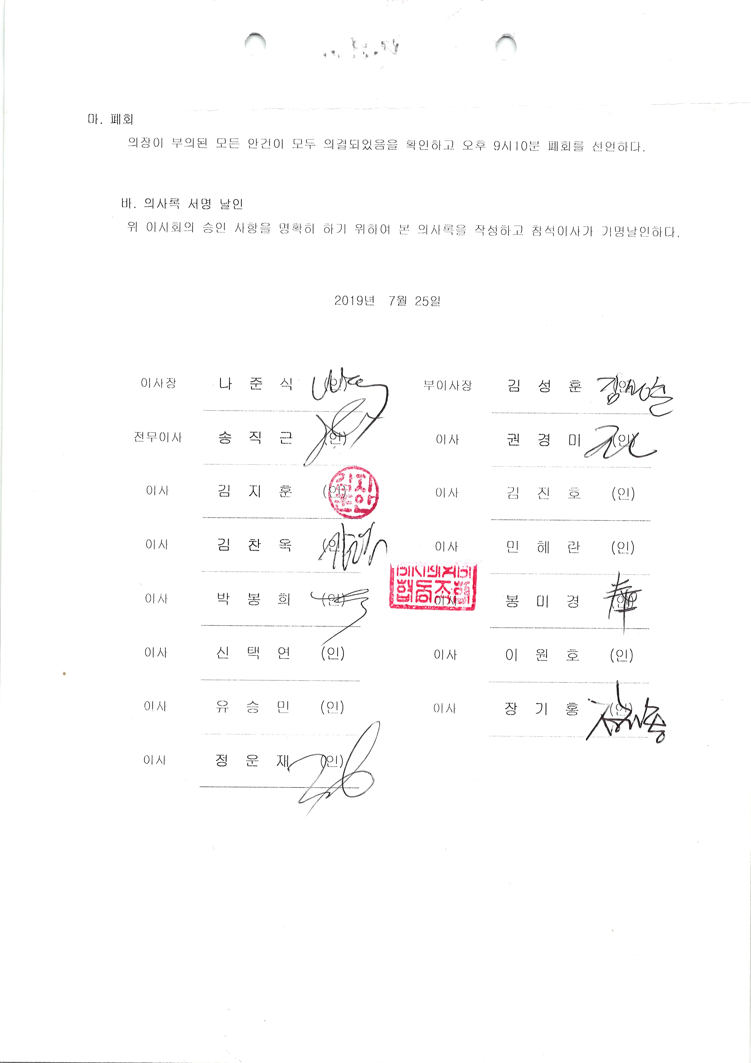 [2019-07] 정기이사회 결과보고