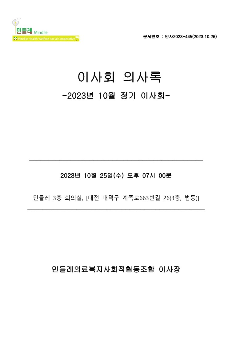 [2023-10] 정기이사회 결과보고