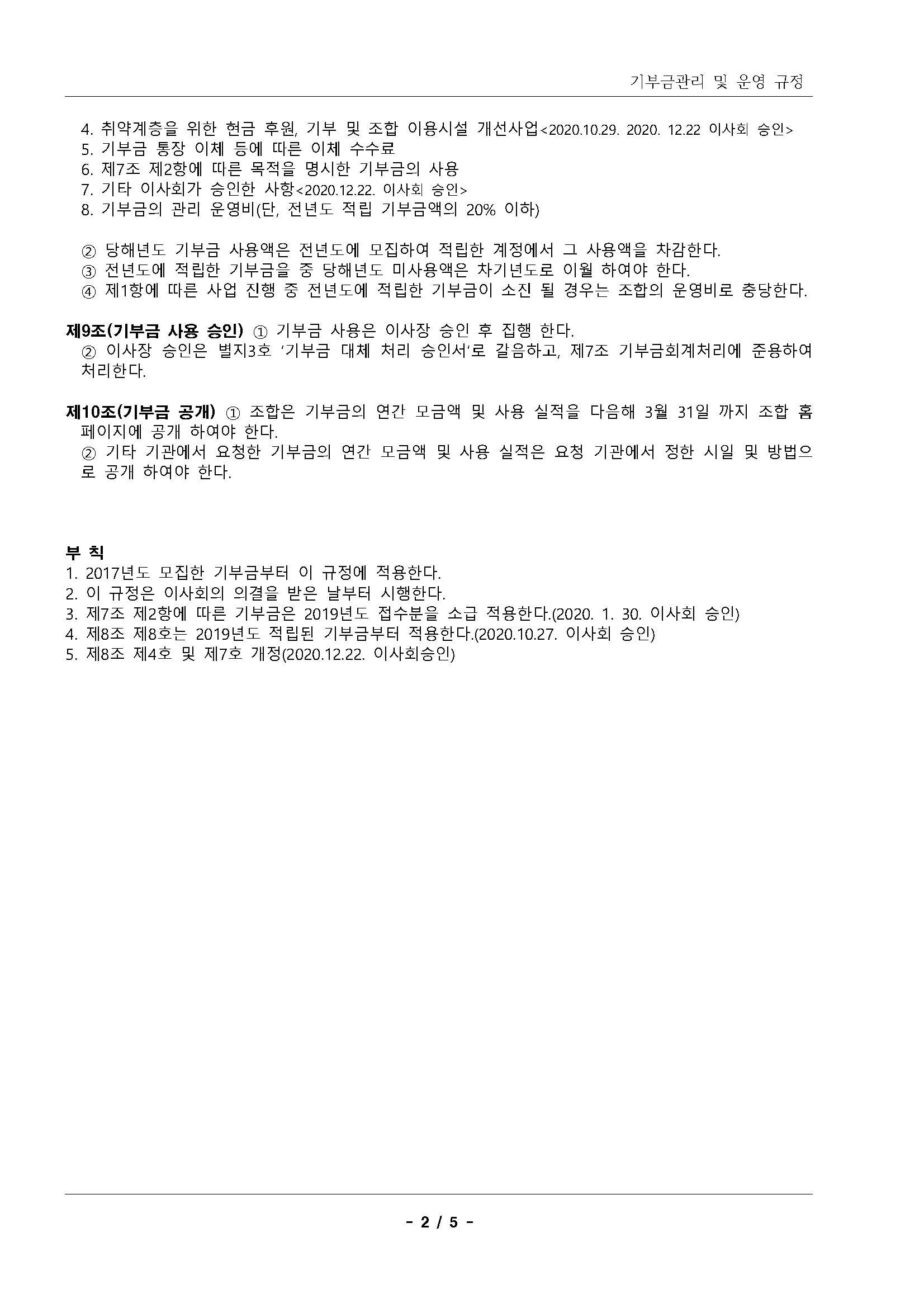 11. 기부금관리 및 운영규정(2020.12.22 개정) 상세내용