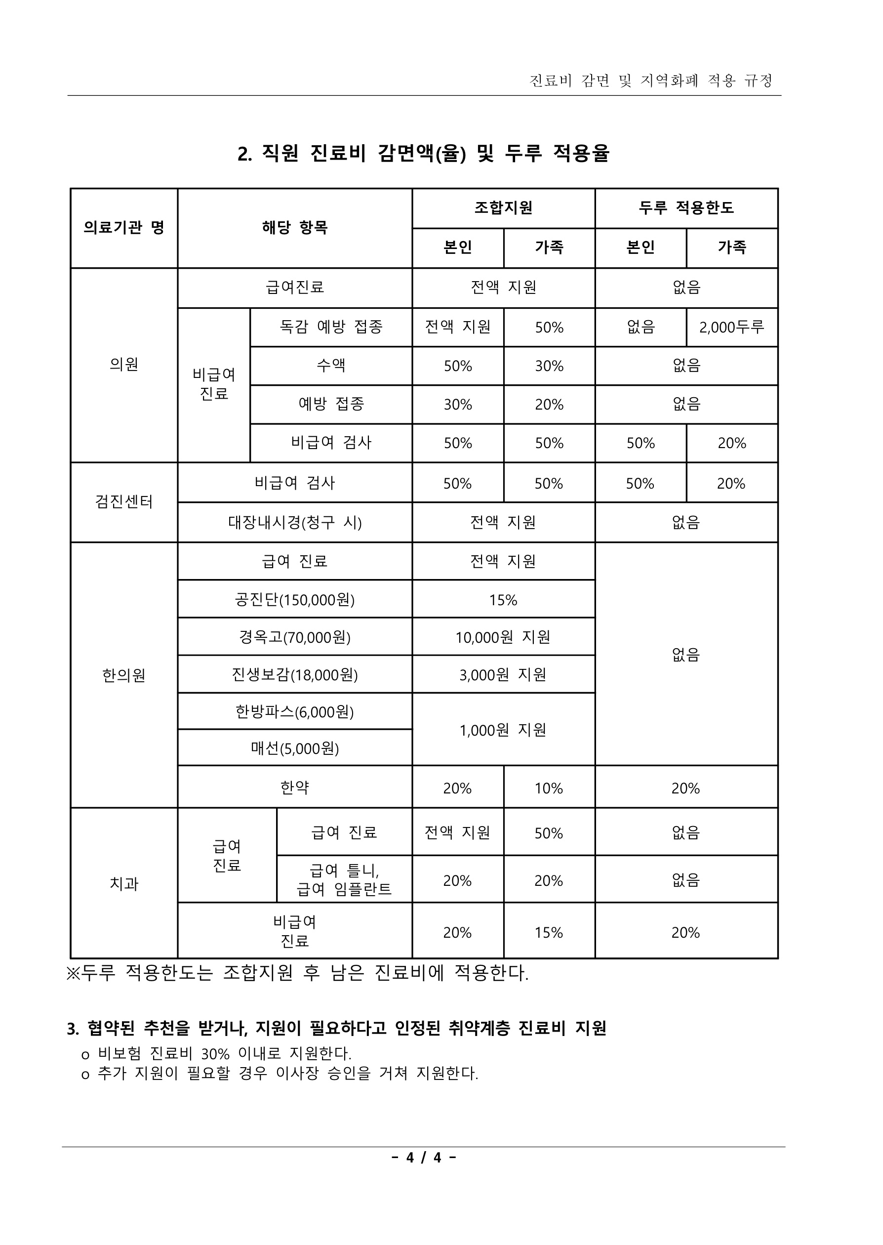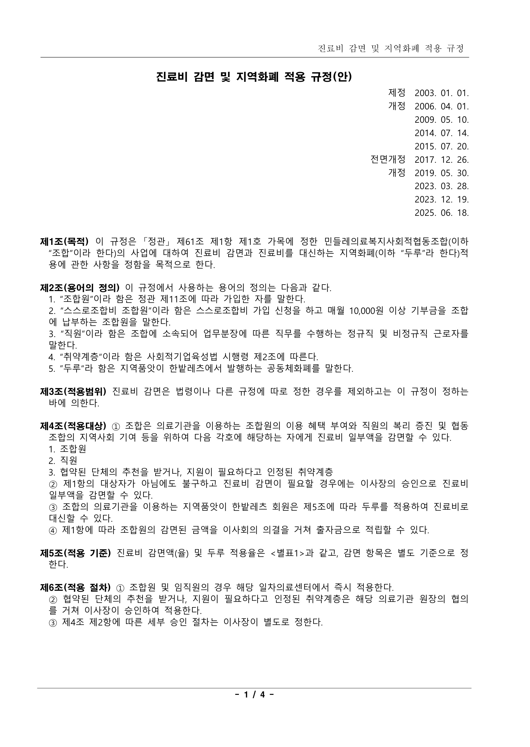 1.진료비 감면 및 지역화폐 적용 규정(2025.6.18 개정)