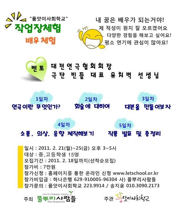 | 제목 | [청소년직업체험] 겨울방학 마지막 기회! '배우체험'참가자 모집중!! |