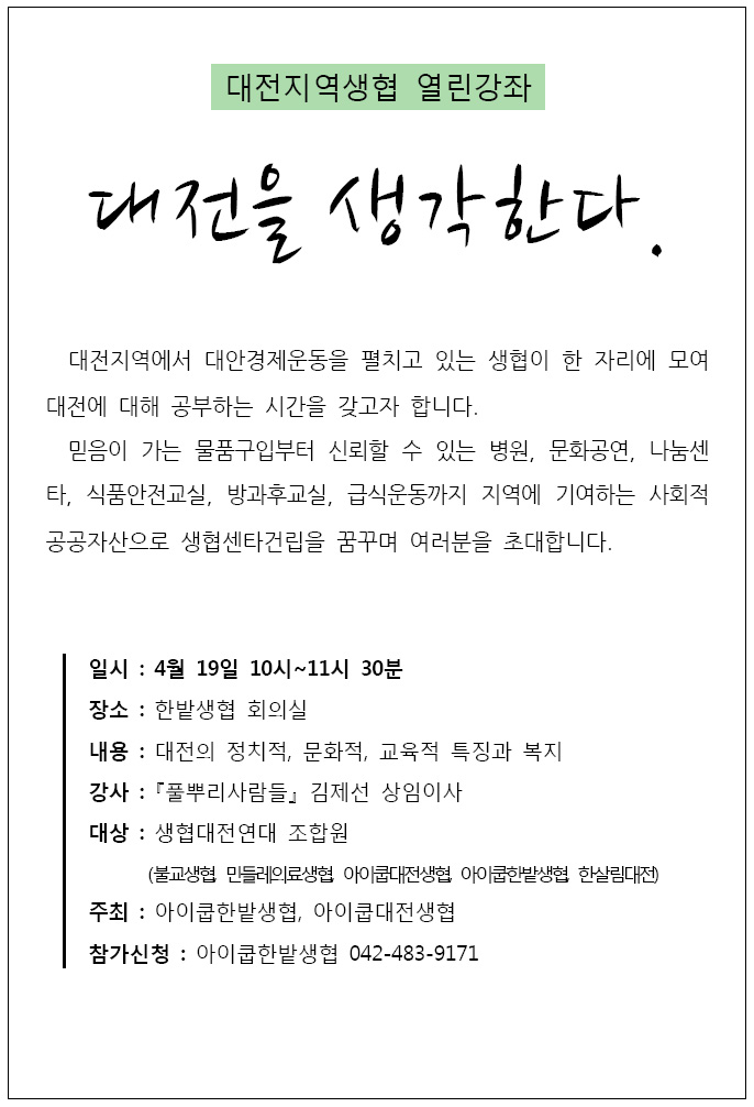 대전지역생협 열린강좌에 초대합니다
