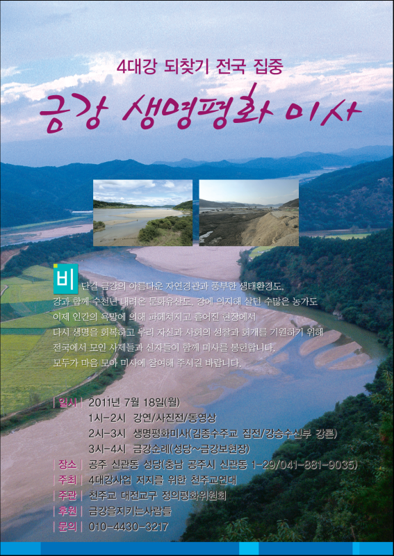 | 제목 | 4대강 되찾기 전국 집중 금강 생명평화 미사 |