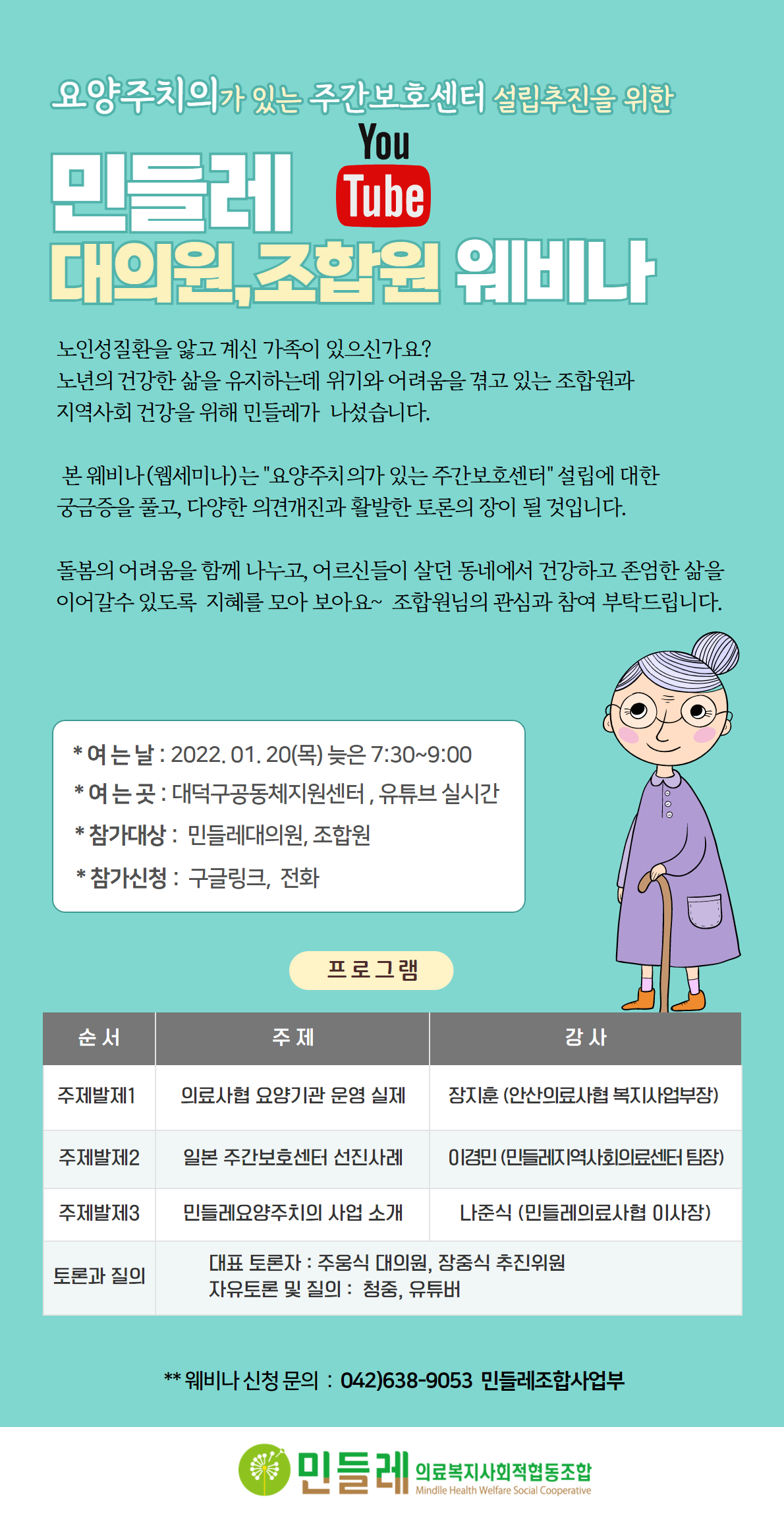 | 제목 | [대의원 웨비나 유튜브 실시간] 요양주치의가 있는 주간보호센터 설립 추진 |