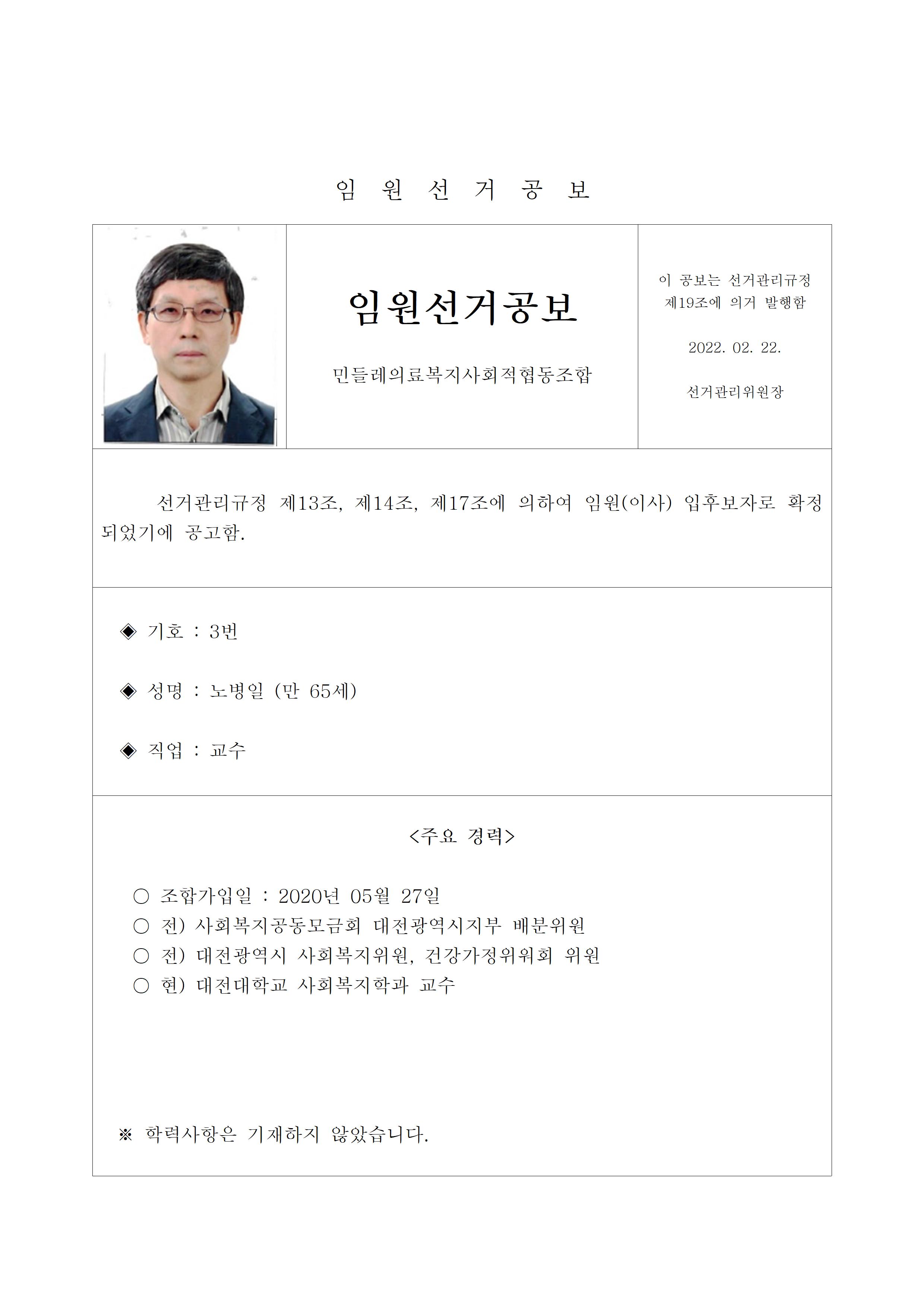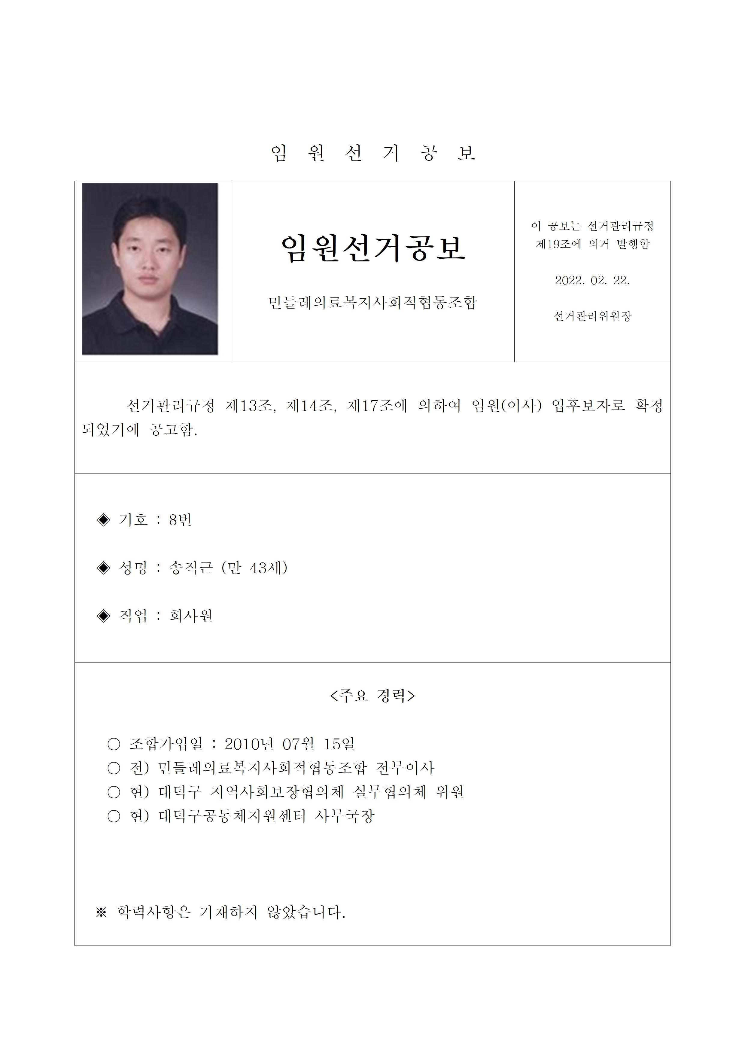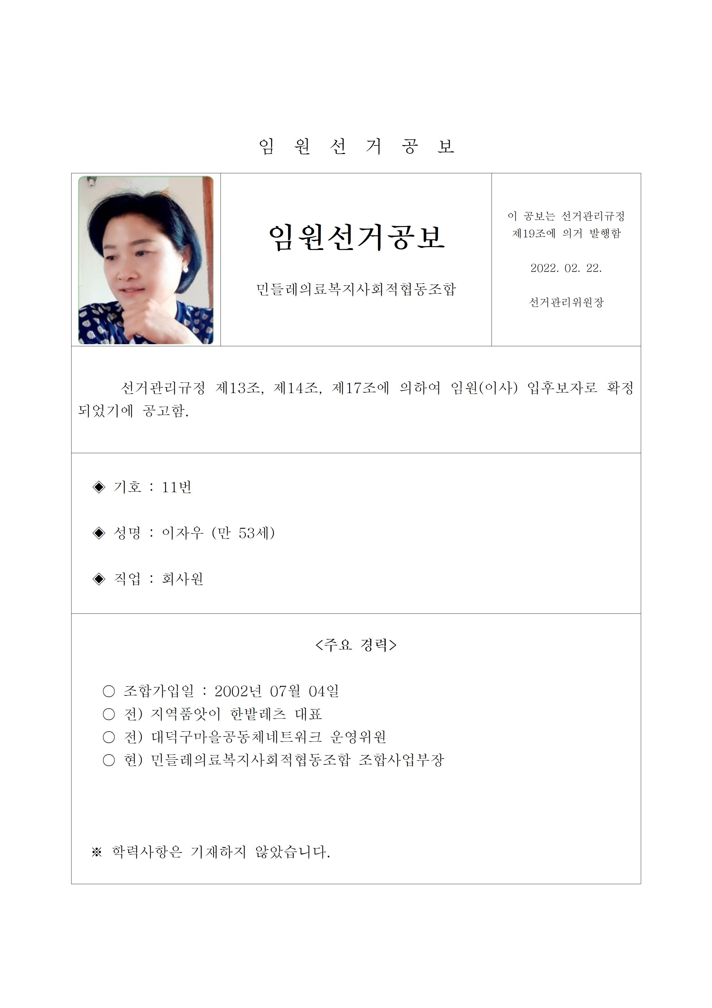 2022년 민들레의료사협 임원(이사, 감사)선거 공보 상세내용