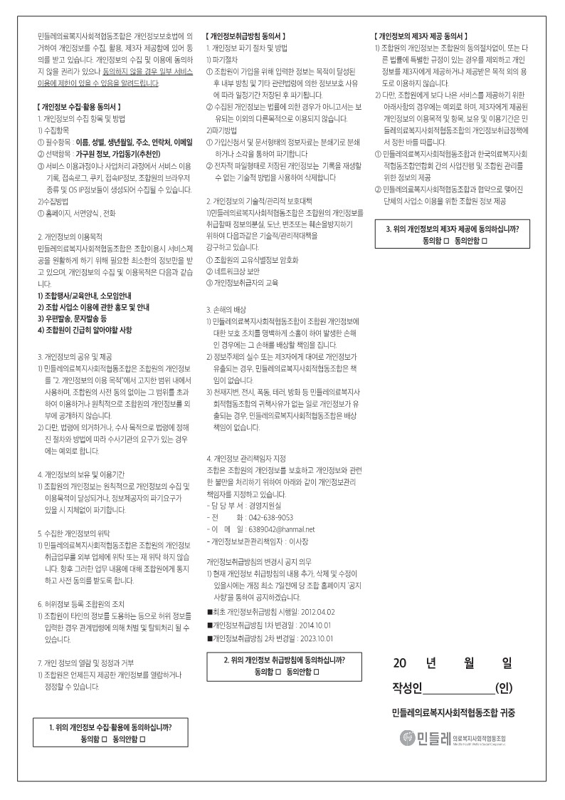 제목 조합원 가입서 개인정보 수집•활용, 취급방침, 제3자 제공 동의서 변경 안내