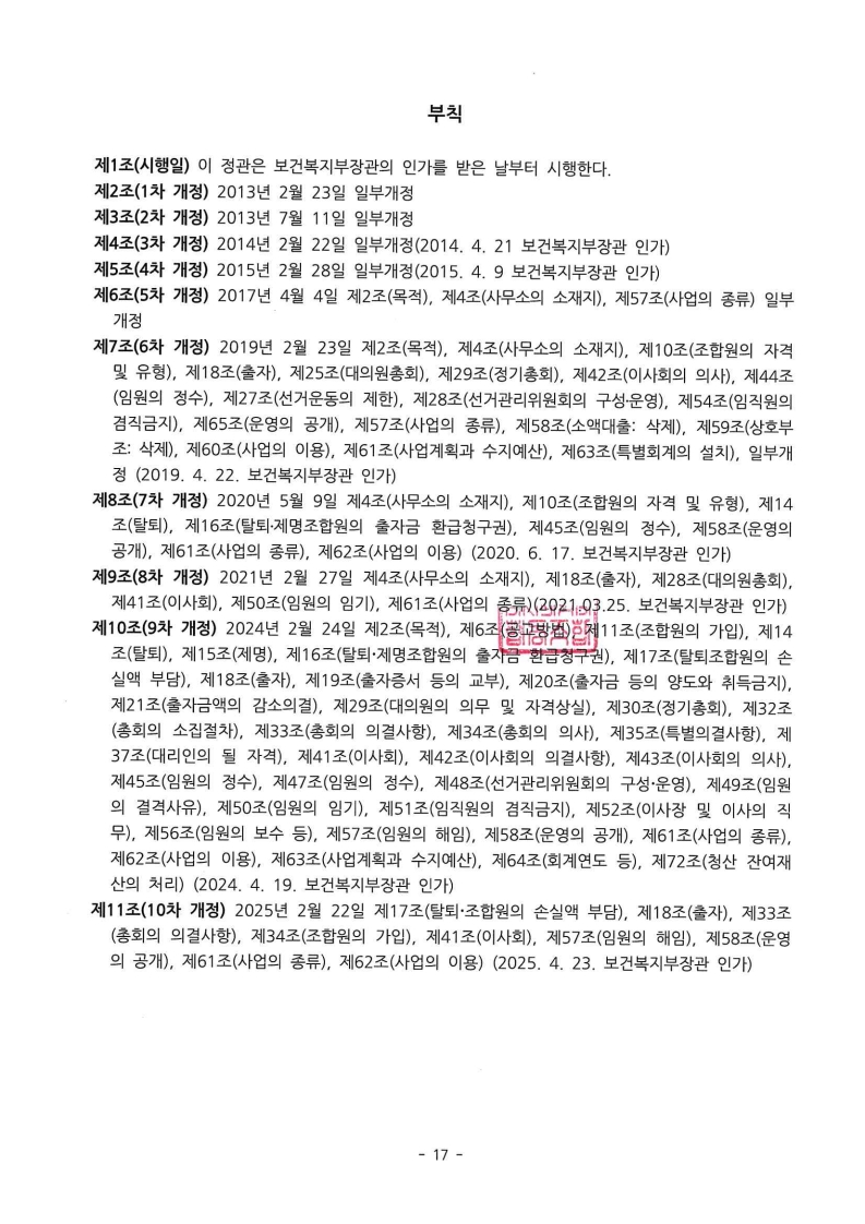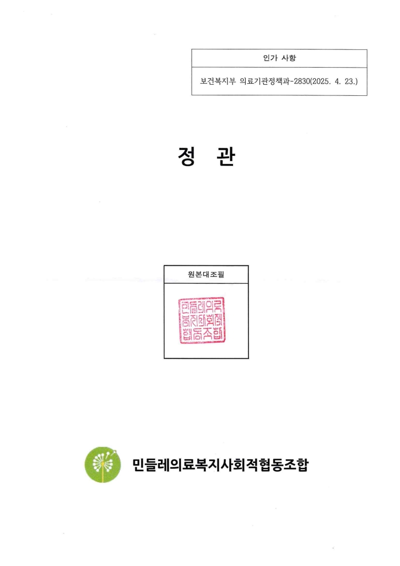 민들레의료복지사회적협동조합 정관(2025.4.24)
