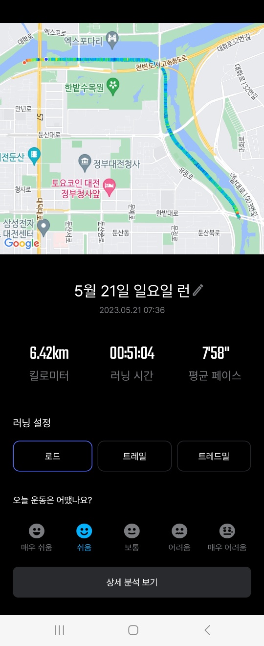 6시30분 갑천변 도로 따라 런닝